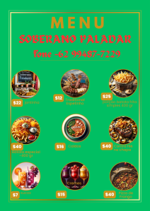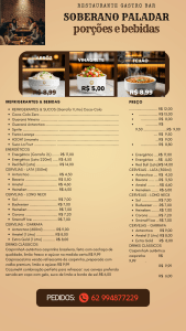 No Soberano Paladar, cada prato é preparado com carinho e sabor de casa. Oferecemos uma experiência gastronômica única com as melhores porções da região, em um ambiente acolhedor para você curtir com amigos e familiares. 📍 Localizado em Goiânia 📞 Pedidos: (62) 9 9487-7229 .
